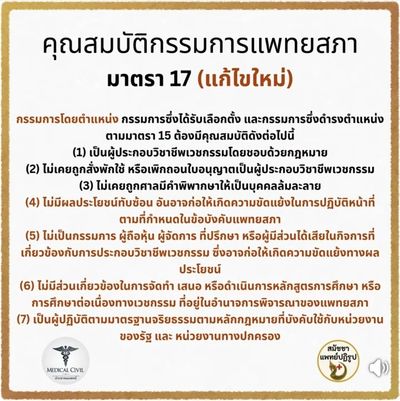 คุณสมบัติของกรรมการแพทยสภา : ร่างกฎหมายจาก สมัชชาแพทย์ปฏิรูป